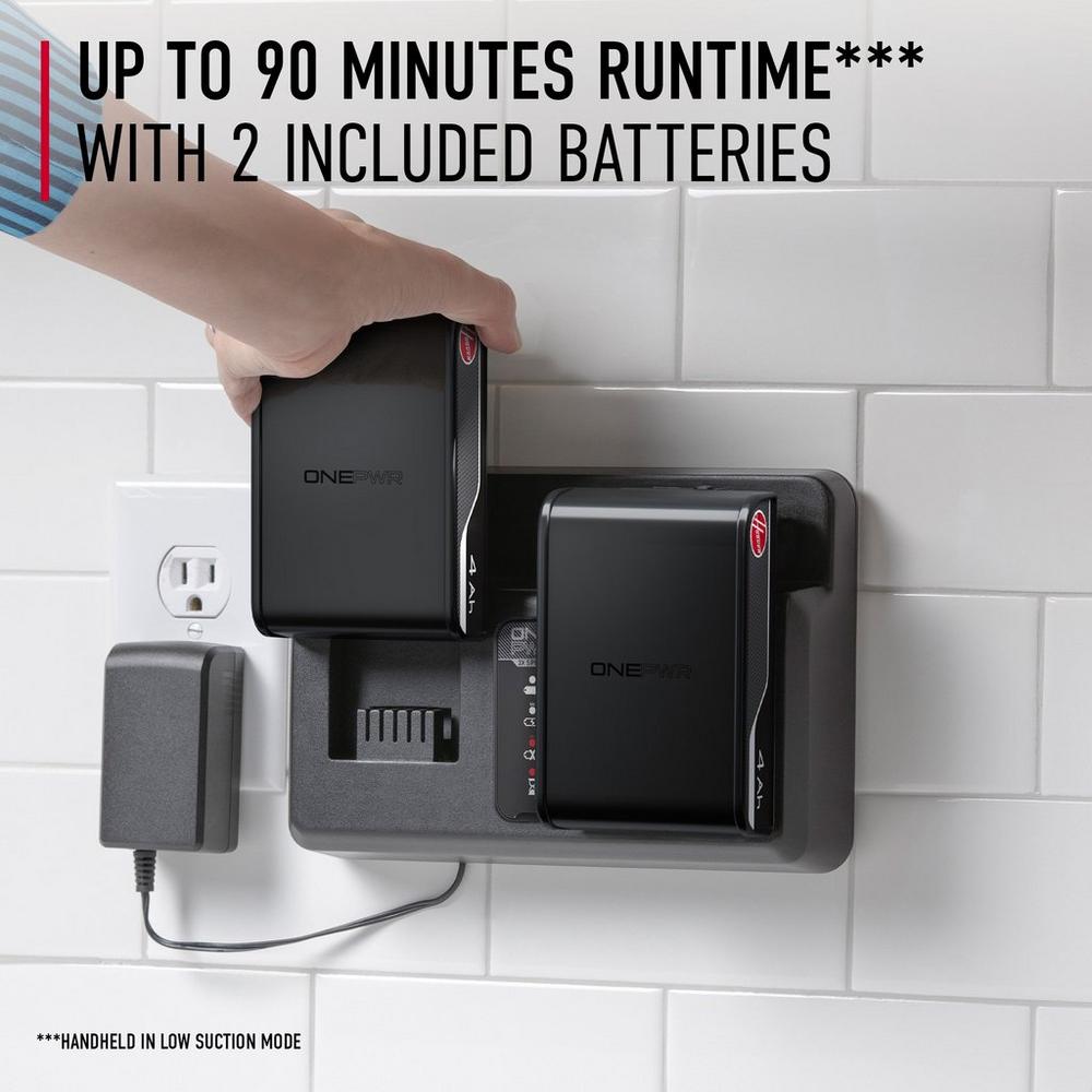 Effortlessly power through everyday messes with the ONEPWR Emerge Pet Cordless Stick Vacuum with All-Terrain Dual Brush Roll Nozzle + 2-Battery Starter Kit. The ONEPWR Emerge Pet Cordless Stick Vacuum with All-Terrain Dual Brush Roll Nozzle + 2-Battery Starter Kit features a high-performance brushless motor that delivers 2x the power* and Dual Cyclonic Filtration that captures 99.4% of dust and fine particles with no loss of suction**. Clean up everything from crumbs to dirt and pet hair across all floor types with the All-Terrain dual brush roll. Convert to a handheld vacuum to clean hard-to-reach areas with our motorized pet tool. powered extension hose and 2 in 1 tool. With a lightweight and cordless design. easily navigate through your home to tackle messes when they happen. where they happen.