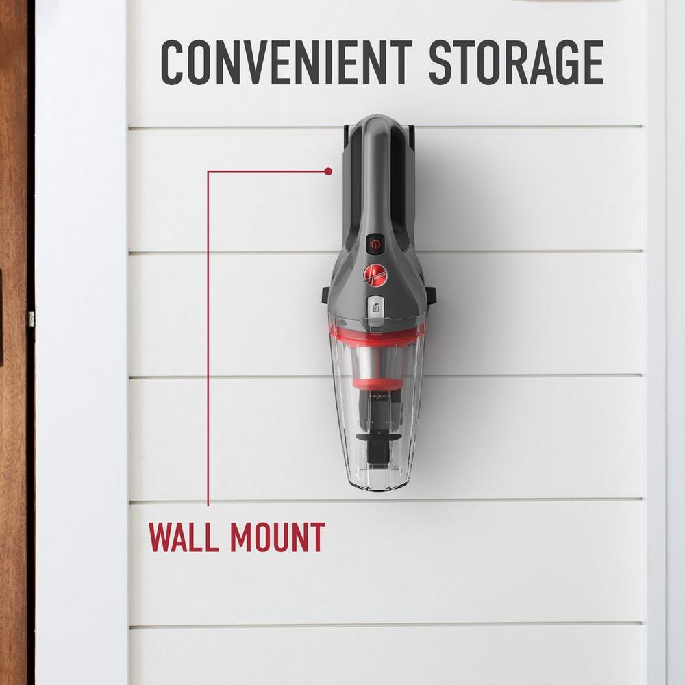 The Hoover ONEPWR? Hand Vacuum is the perfect cleaning companion that combines lightweight portability with powerful suction. No mess is too tough to tackle. no matter how unexpected or challenging it may be. Equipped with a 2-in-1 crevice tool and dusting brush. effortlessly reach and clean every nook and cranny. leaving no hard-to-reach areas untouched. Once clean-up is done. store the ONEPWR? Hand Vacuum on the included wall mount for convenient storage. Get ready to keep the clean going with the ONEPWR? Battery System to clean anywhere without interruption.