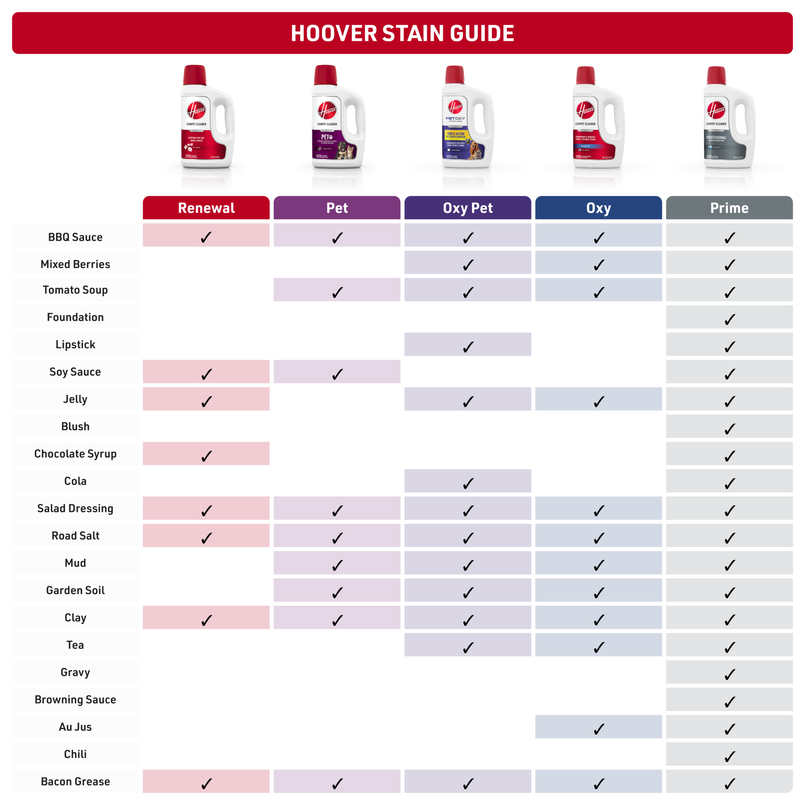 Win against life’s toughest stains with HOOVER? Oxy Carpet Cleaning Formula. This fast-acting. stain fighting formula attacks and breaks down both old and new stains for easy cleaning. Oxy technology neutralizes pungent odors and leaves your carpets smelling fresh and clean with an ocean breeze scent.