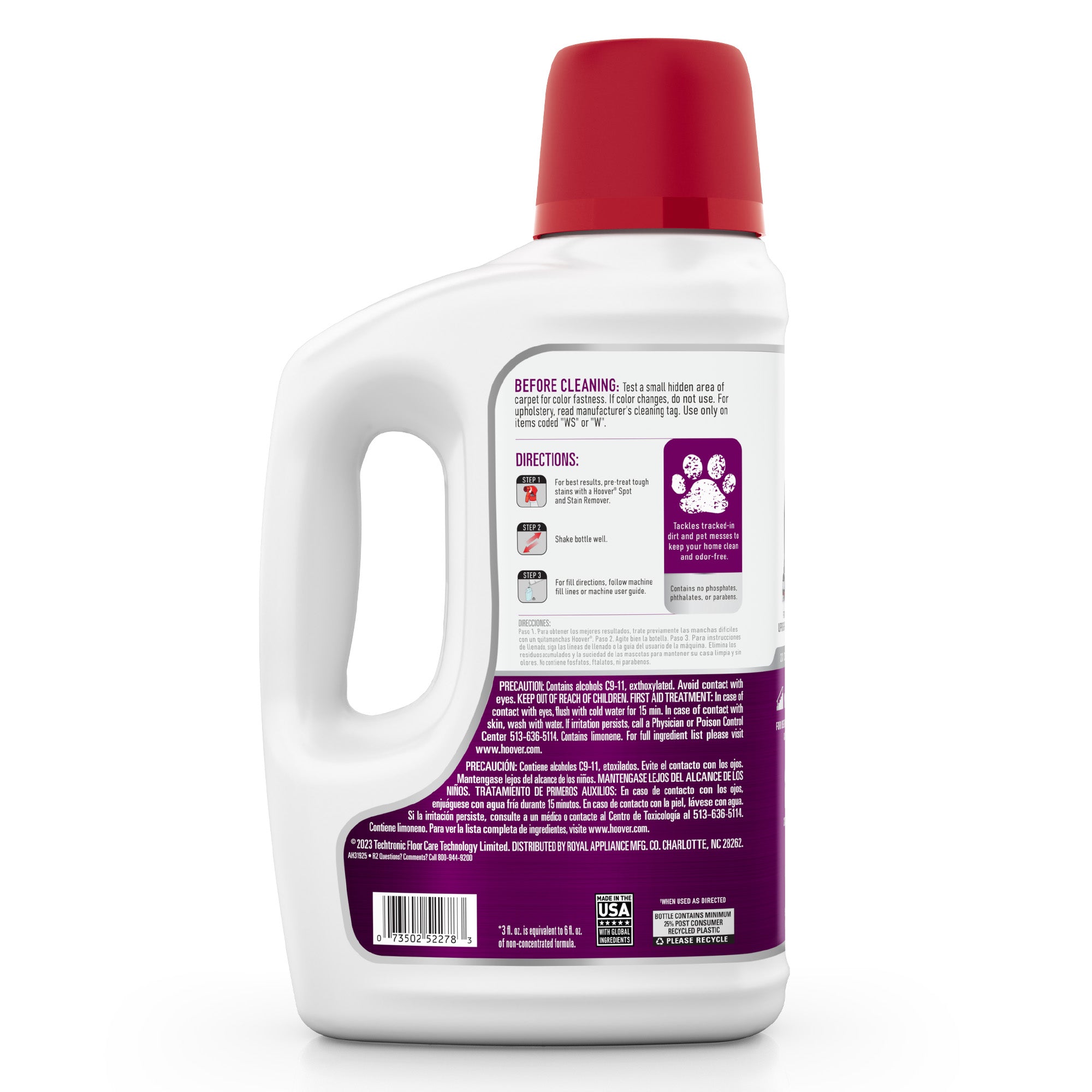 HOOVER? Paws & Claws Carpet Cleaning Formula makes it a breeze to clean up after your furry friends. even with repeat accident-makers! This advanced formula helps prevent future stains. and it even continues to work after you’ve finished cleaning. It’s formulated with enzymatic cleaning ingredients to neutralize odors and leave your home smelling fresh. Use this solution to clean carpets. area rugs. upholstery and car interiors.