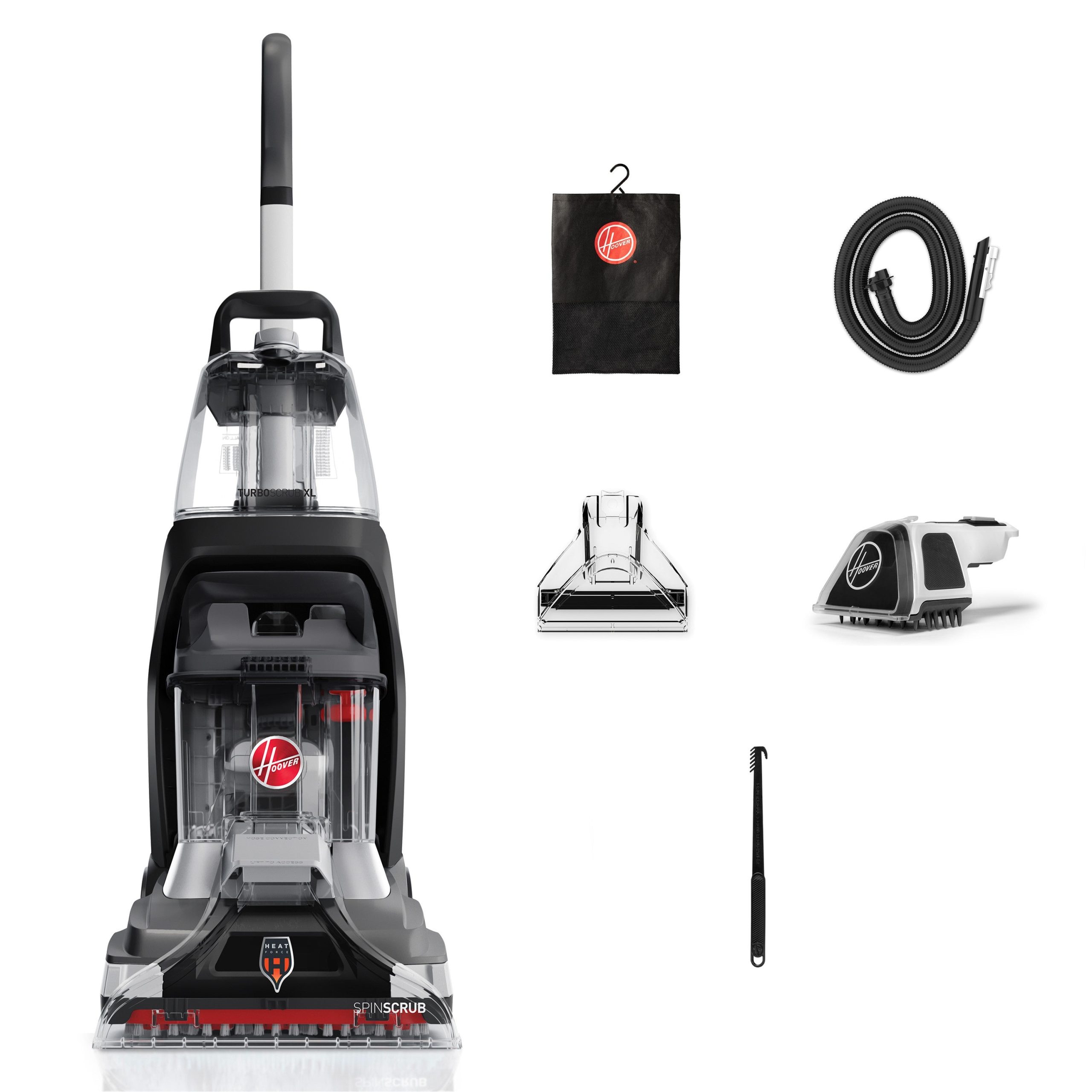 The Hoover PowerScrub XL+ Carpet Cleaner powerfully tackles deep. set-in stains and renews your carpets for a complete. whole home clean. Easily remove stains with the combined power of the five counter-rotating SpinScrub brushes and HeatForce faster drying. Our TruMax recovery tank helps you clean more without stopping frequently to empty and refill. Plus. PowerScrub XL comes with versatile tools to target stubborn messes beyond your carpets.