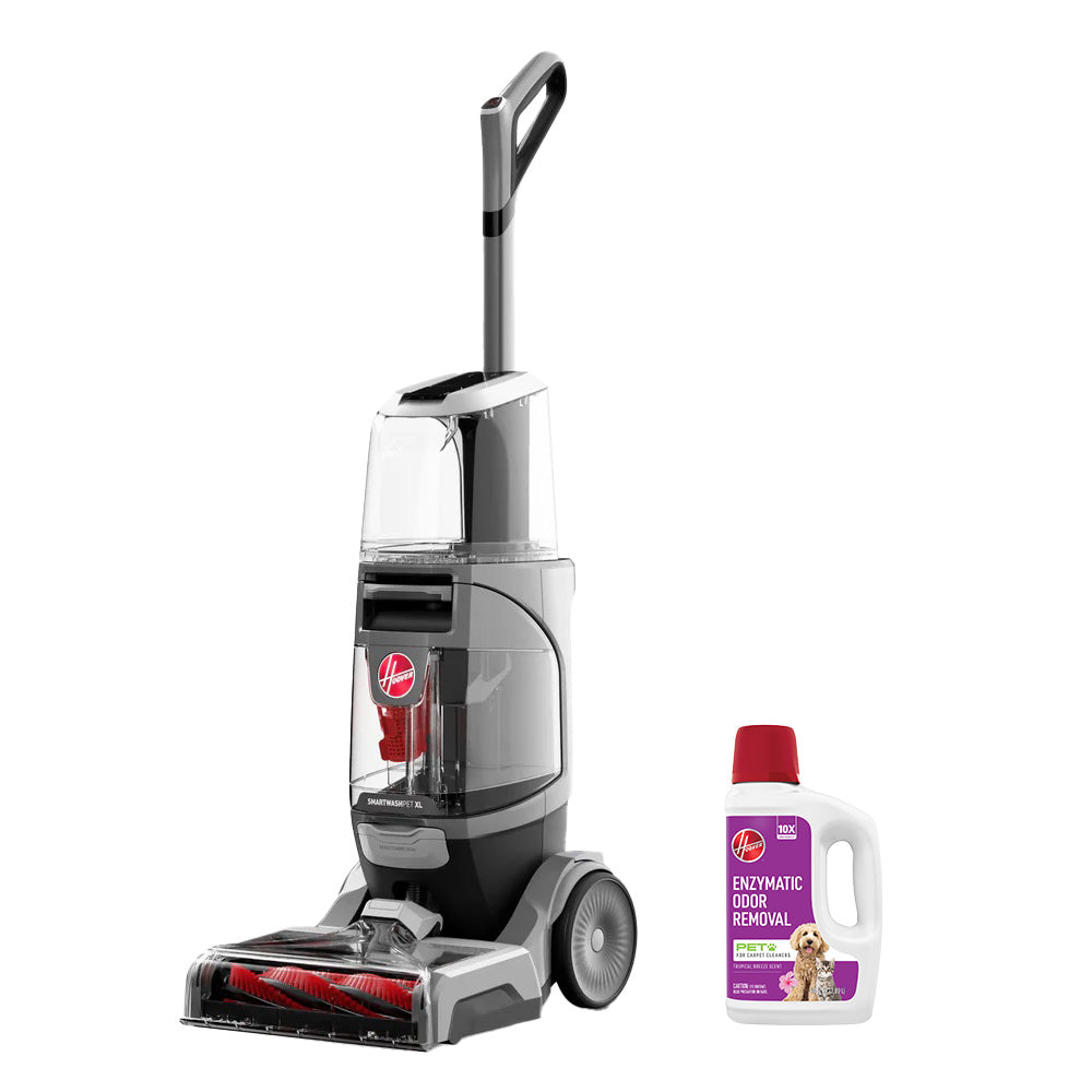 Introducing the SmartWash Pet XL & Pet Oxy Bundle. the ultimate solution for hassle-free carpet cleaning! With Automatic Cleaning Technology. this innovative machine automatically senses when to wash and dry. The included Self-Cleaning Tray flushes out hair and debris for easy cleanup. while the Spot Boost Mode unleashes more cleaning power on stubborn stains. Experience fast drying time and the convenience of XL capacity tanks that help make cleaning quick and easy. Plus. it easily converts to a Spot Cleaner with the included 8-foot hose. perfect for tackling stairs and upholstery.